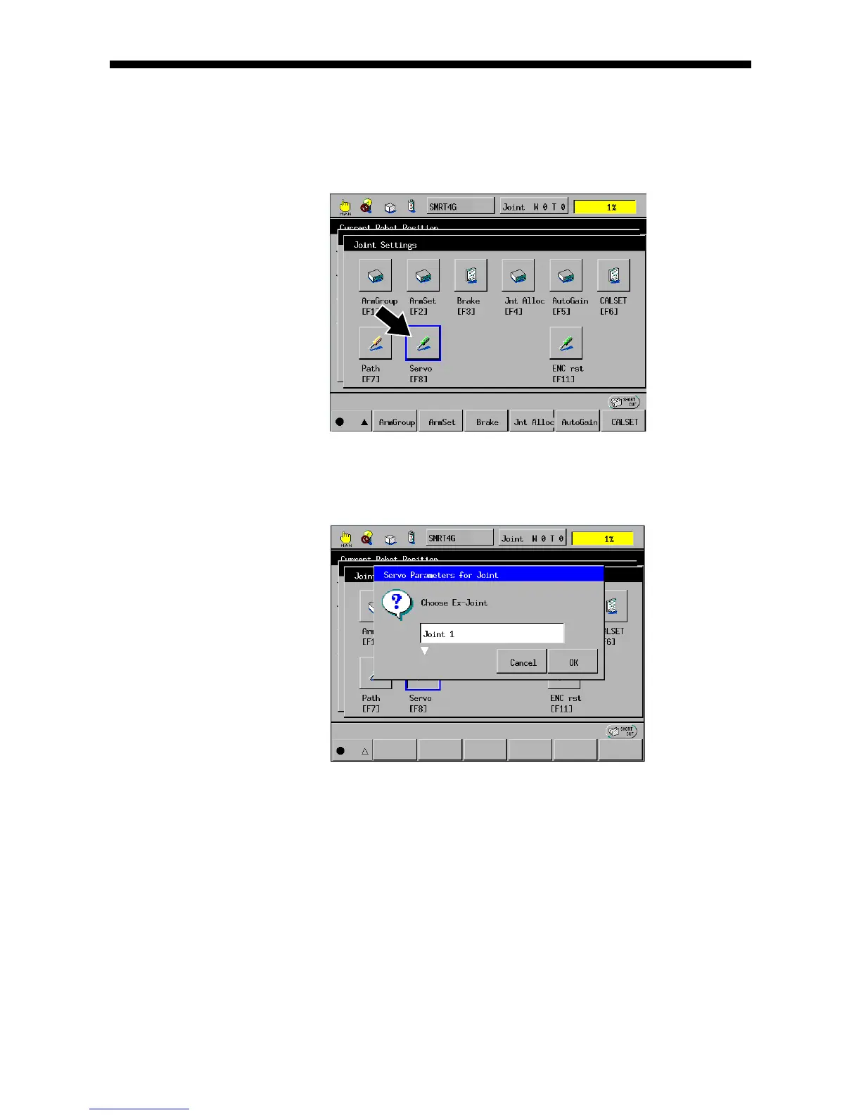(2) On the Joint Settings window shown above, press [F8 Servo]. The servo