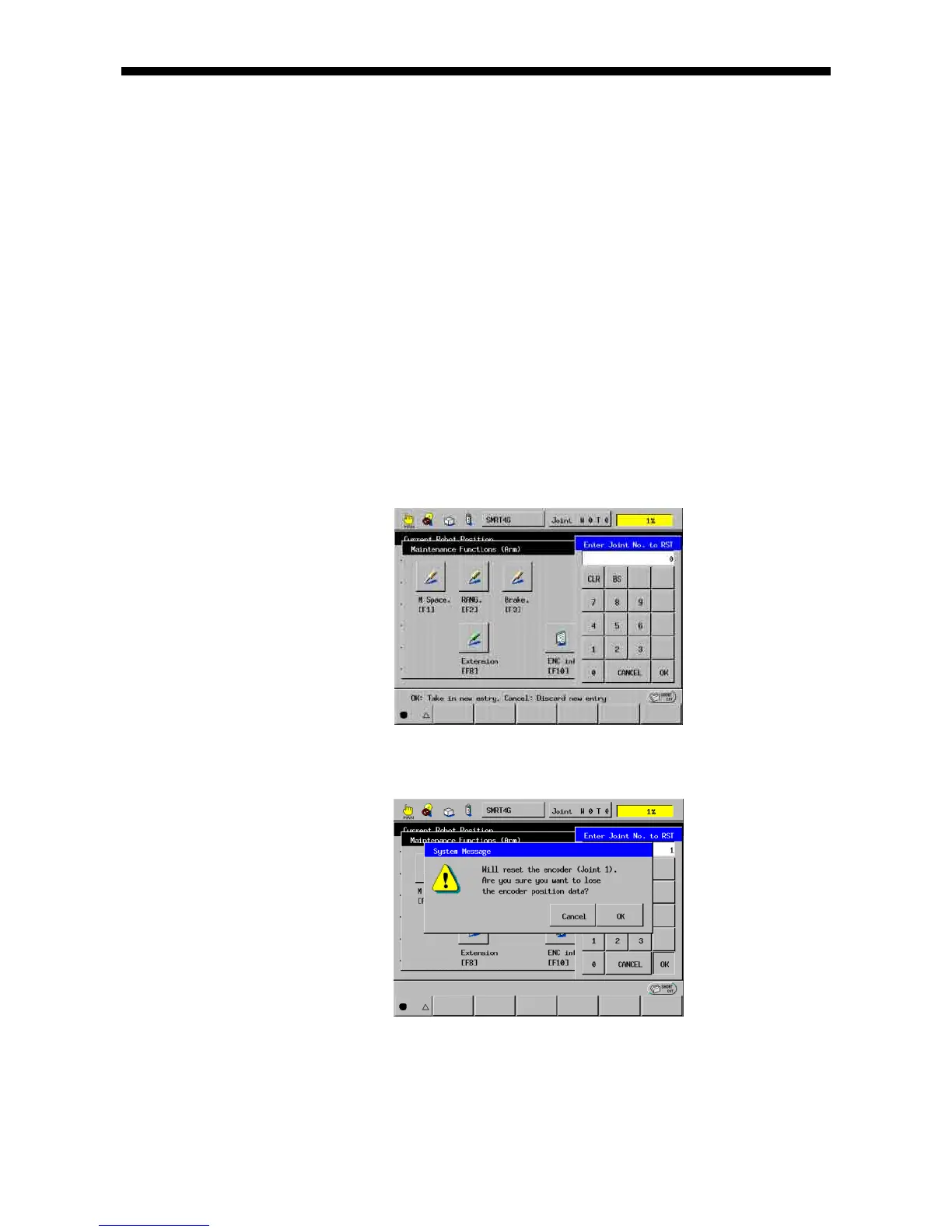 Pressing [F11 ENC rst] in the Maintenance Functions (Arm) window will display