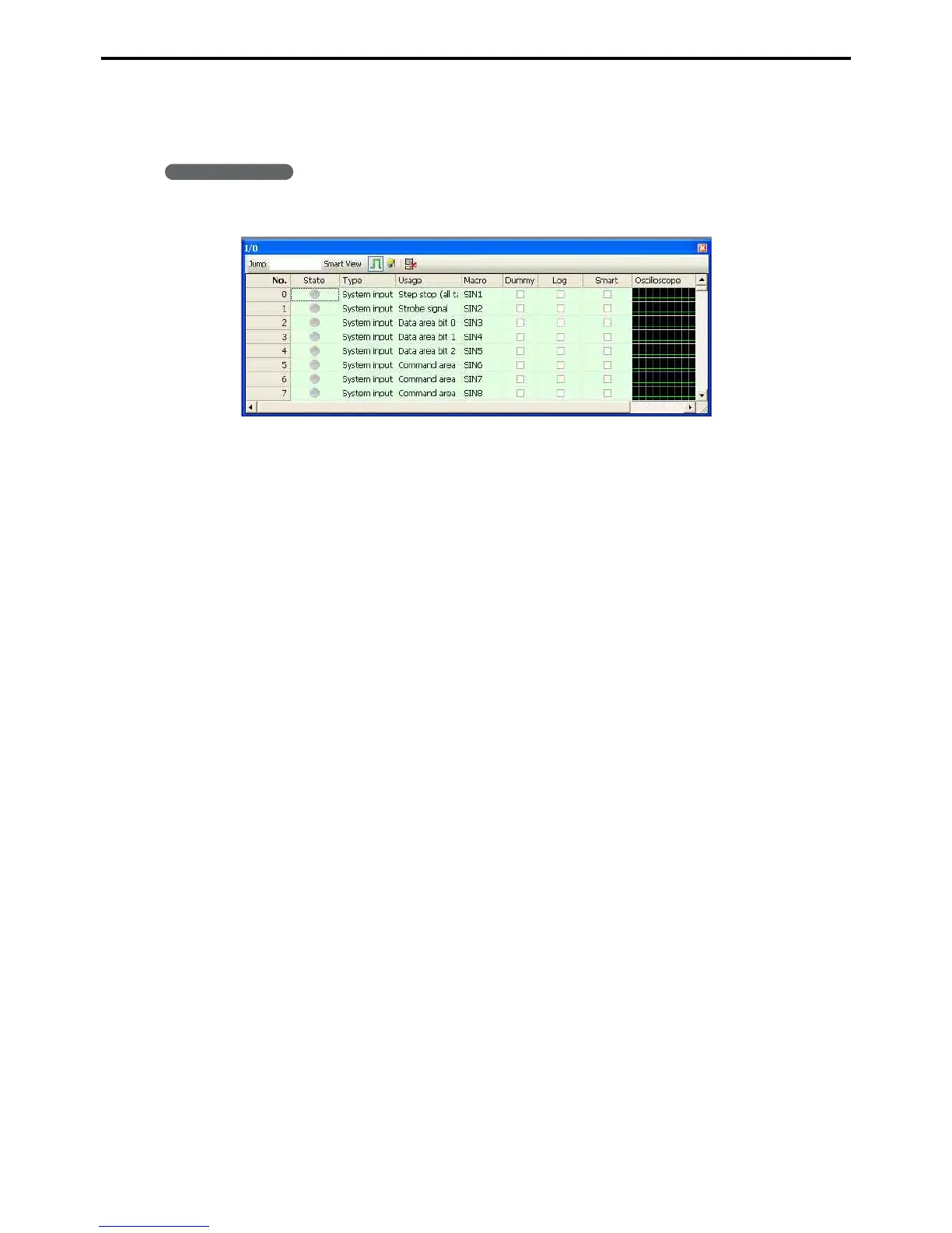 Displays only I/O with a check in the Smart column.
