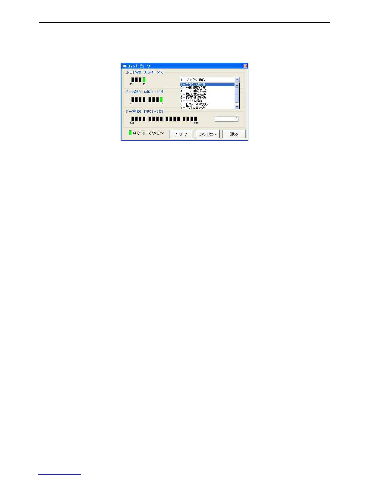 The on/off status of the Command field, Data field 1, Data field 2 and Odd parity are reflected in the robot