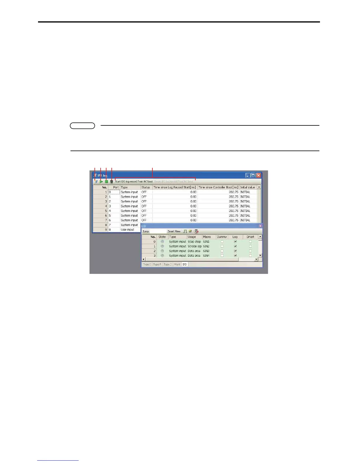 B: Start I/O log button
