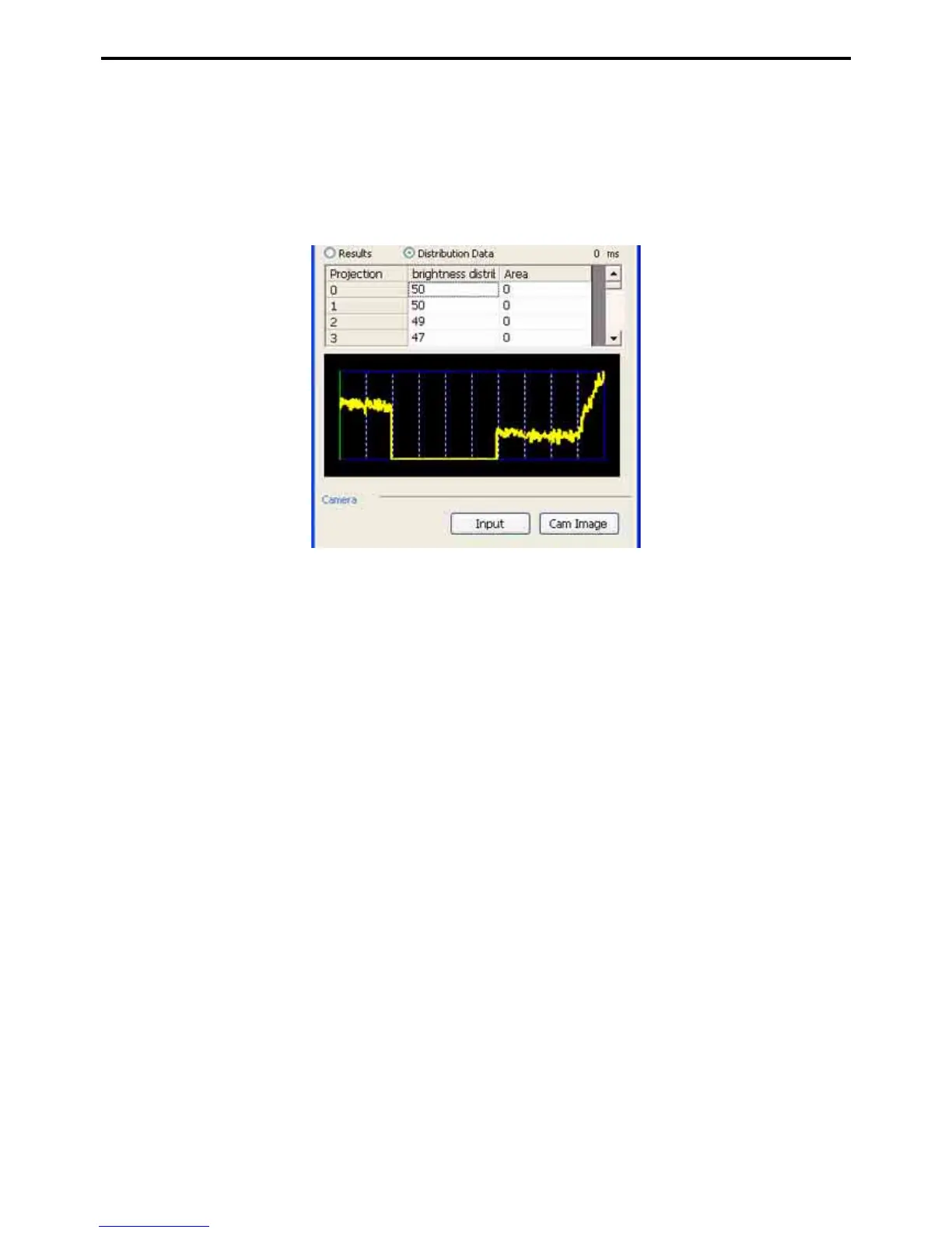 Clicking on the Brightness distribution or Area column displays the Brightness distribution graph or Area
