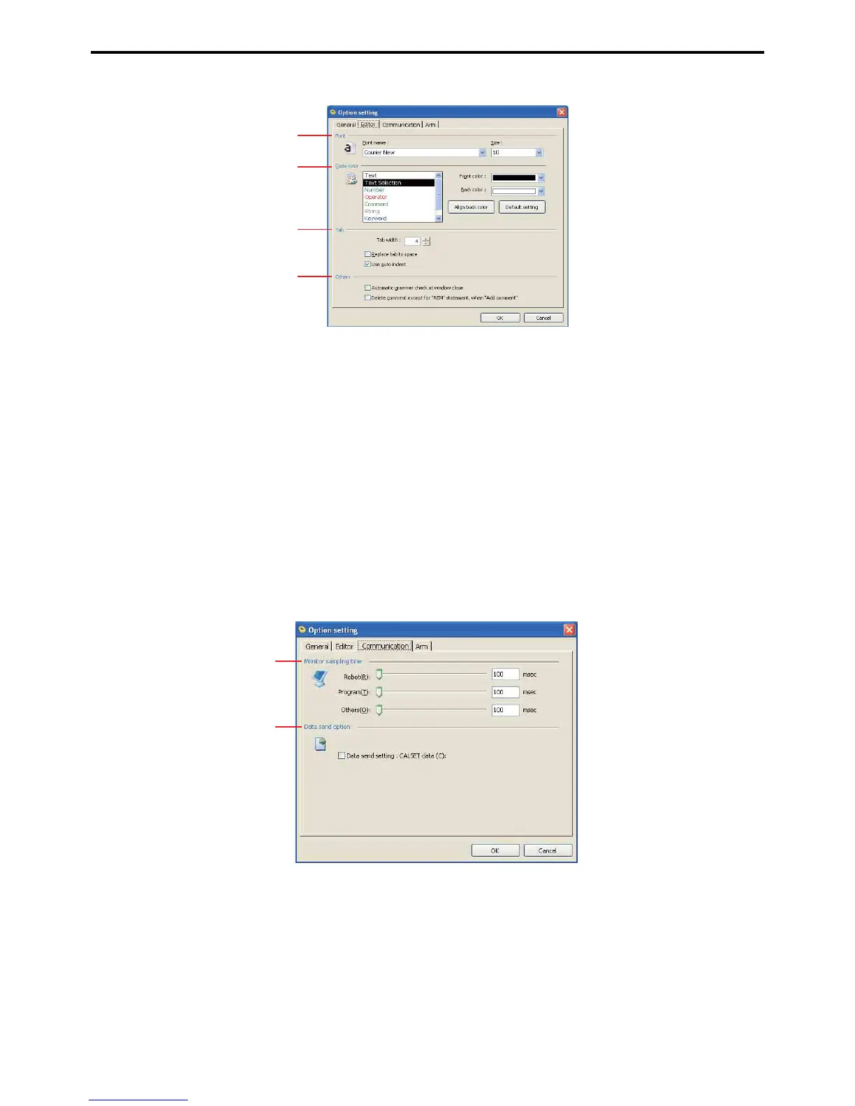 The options in this area configure data transfers to the robot controller.