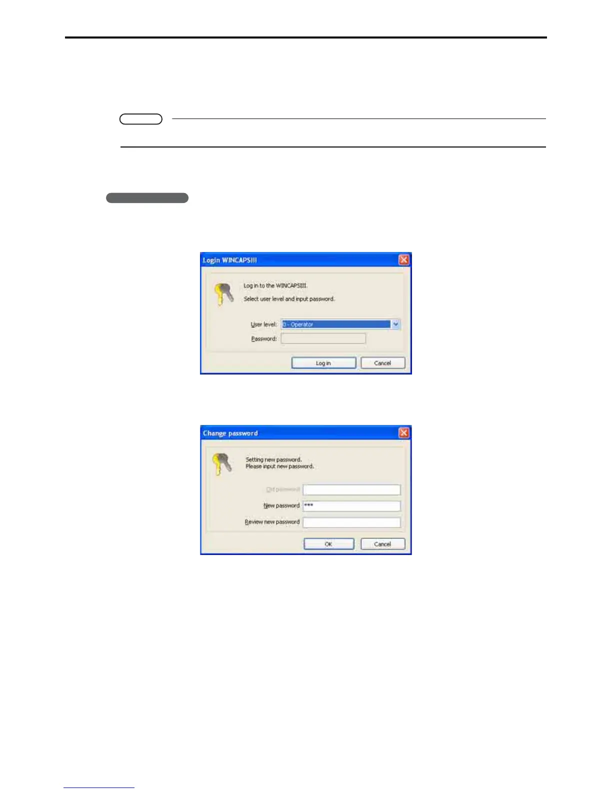 Using WINCAPS III at the programmer level requires logging in with a password.