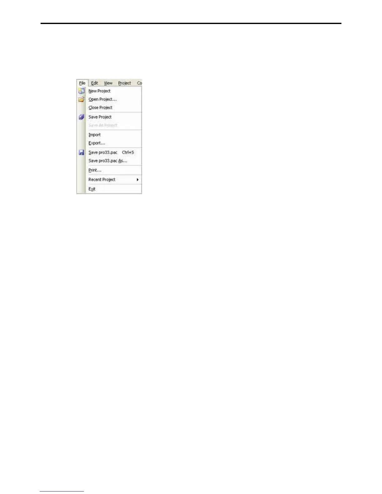 This closes the currently open project. If the project has program edits or