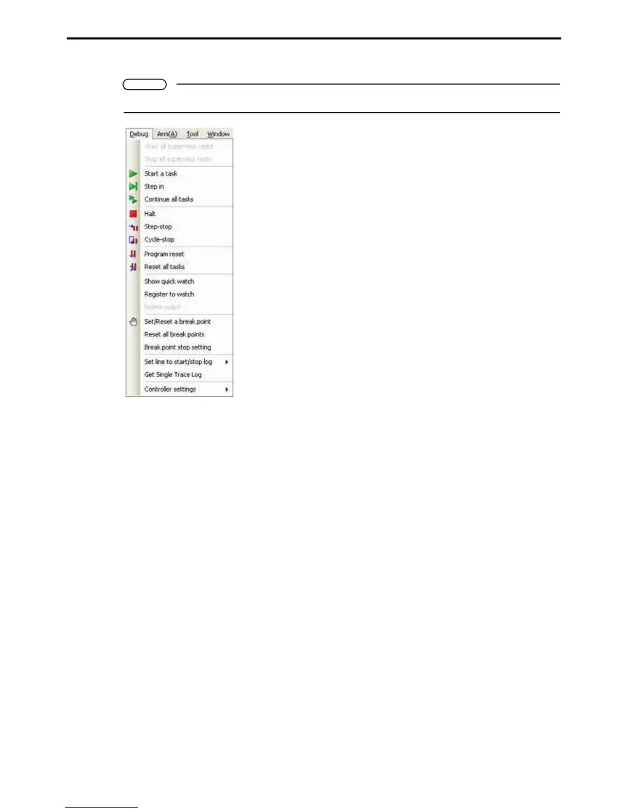 The Debug menu is available in WINCAPS III connected with the robot controller version 2.7 or later.