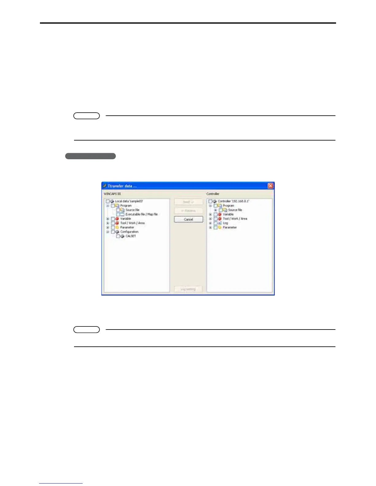 Some items will not appear in the list of transferable data due to WINCAPS III settings or robot con-