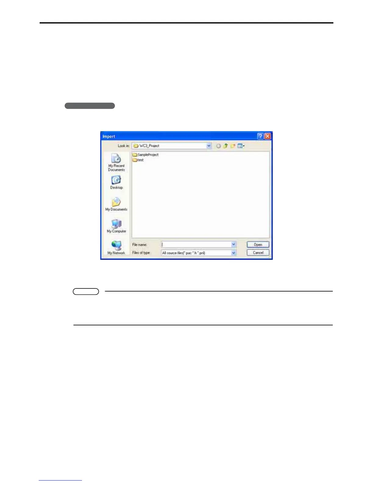 1. Choose Project|Import... to display an Open dialog box.