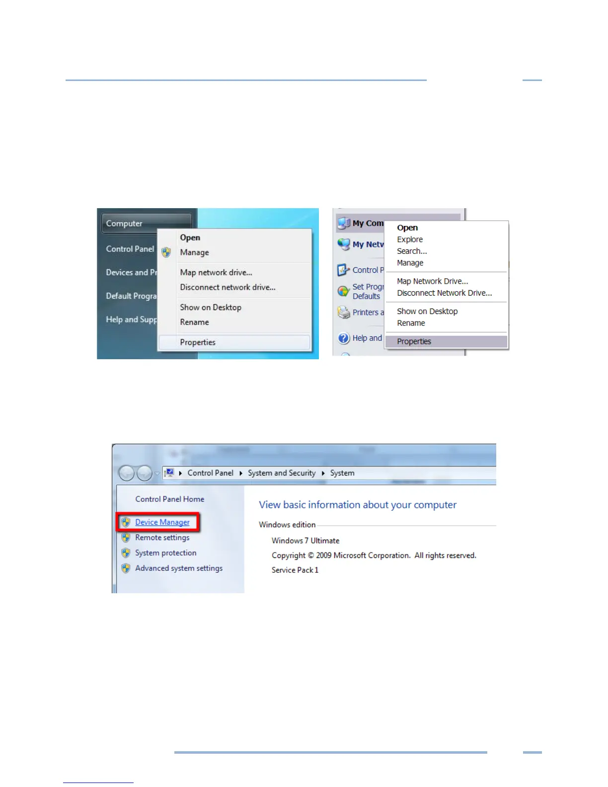 1) Go to the Device Manager by right-clicking My Computer in the Start Menu and selecting