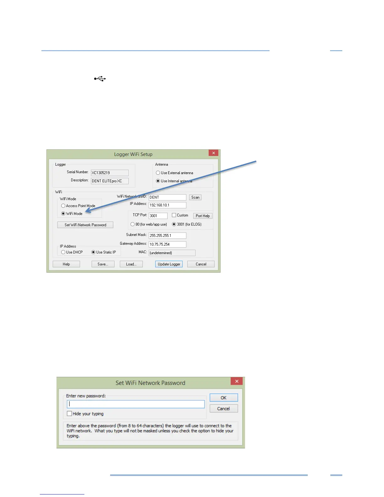 3) From the ELOG menu, select Logger > Communication > Logger Wi-Fi Setup…. The Logger Wi-Fi