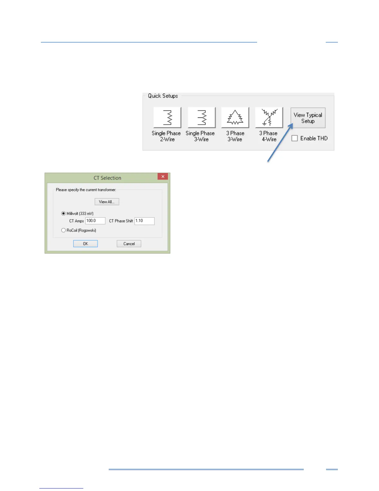 Select Millivolt and enter the CT Amps, the primary current rating of the current transformer, and