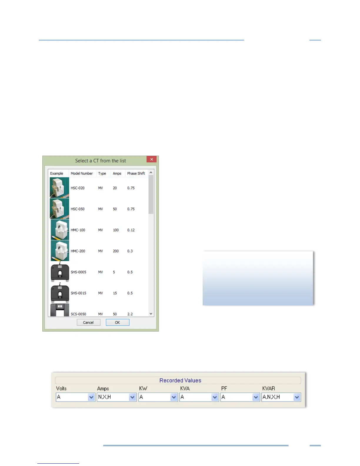 phase shift. Selecting a CT from that window automatically populates the Amps and Phase Shift fields