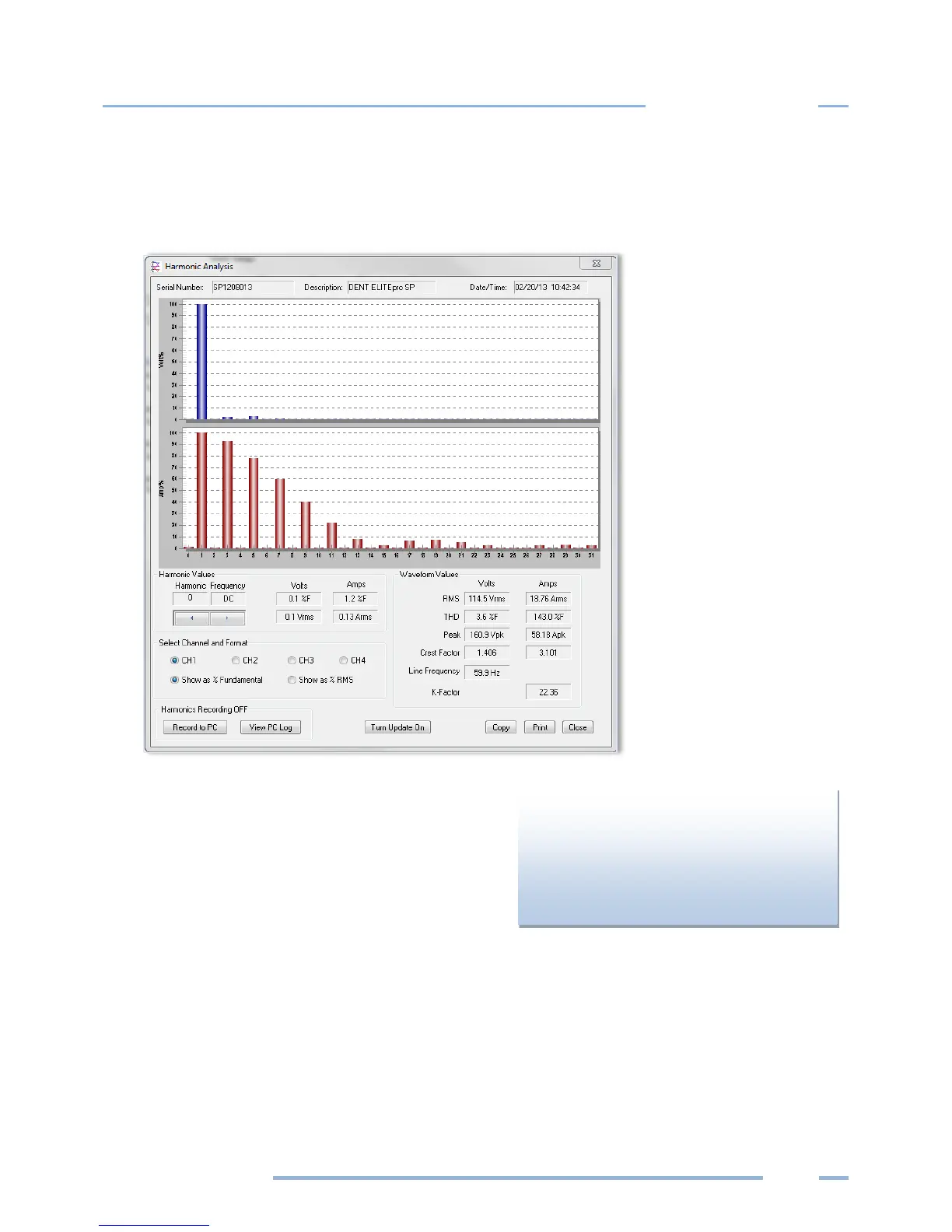 used to view the values up to the 63 harmonics. The Waveform Values section provides summary