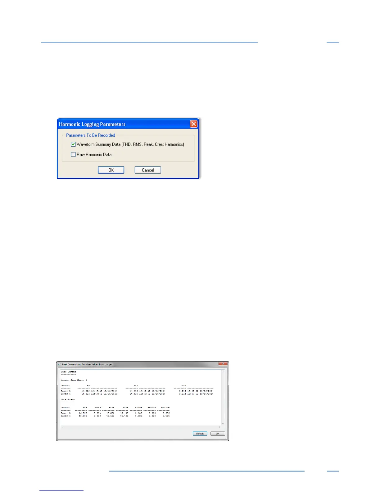 spreadsheet. When you click Record to PC the Harmonic Logging Parameters dialog box displays.
