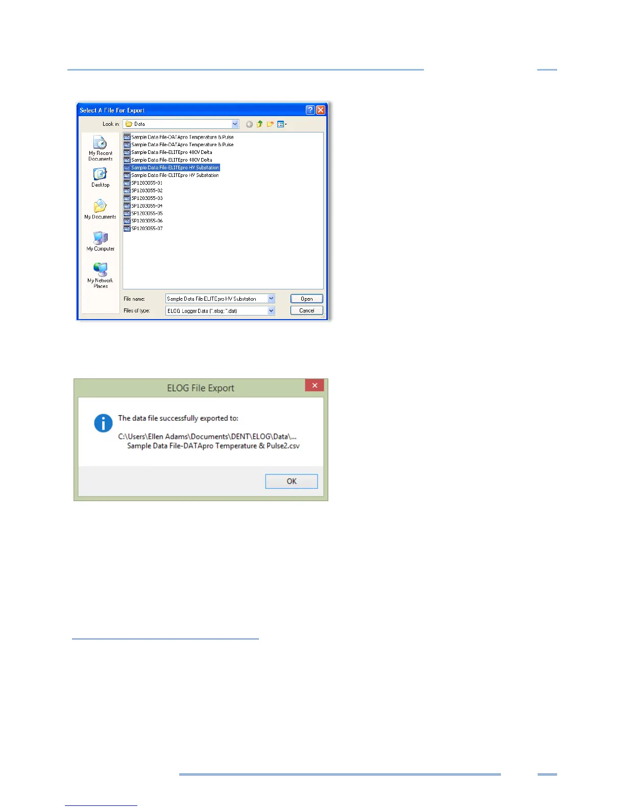 3) Select a file and click Open. The ELOG File Export dialog box displays when the file data completes