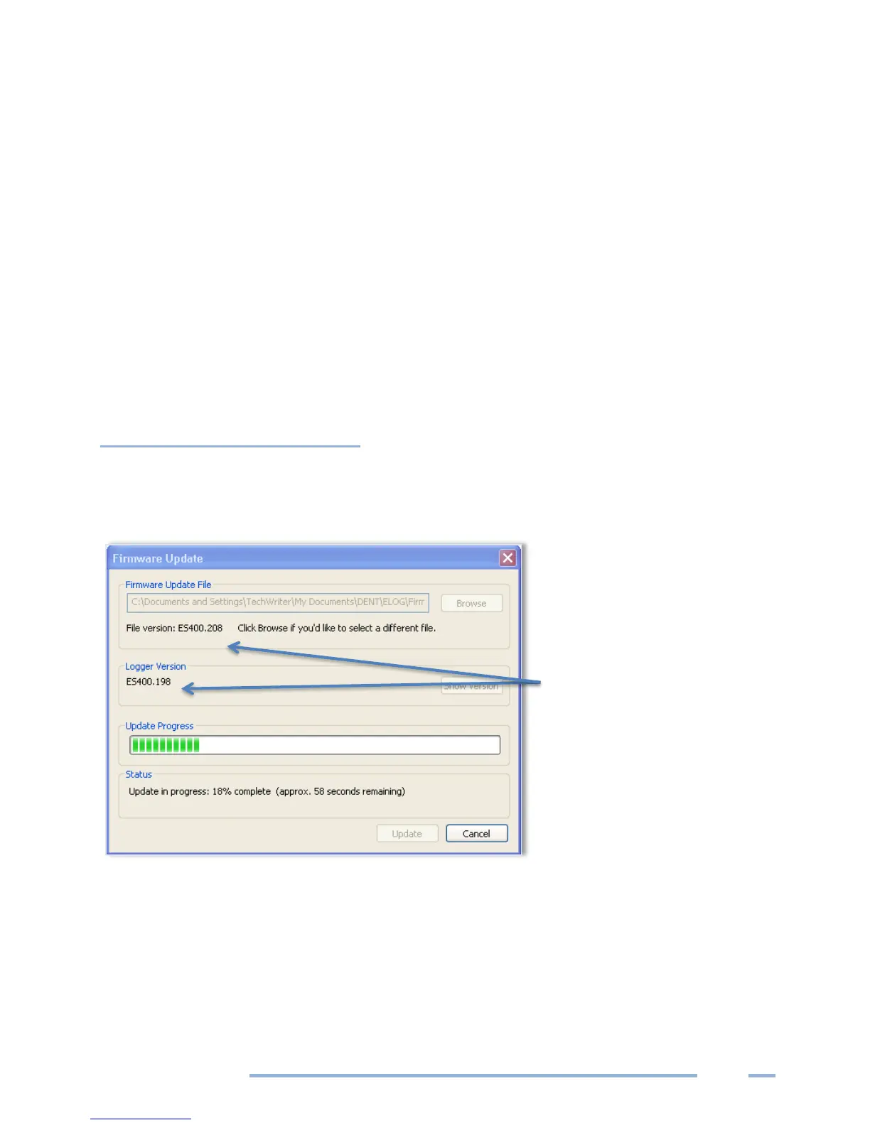 Logger Firmware. The Firmware Update dialog box displays. No update is required if your firmware File