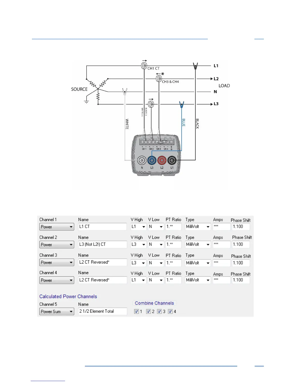 *The CT on channel three of the ELITEpro XC is placed on the L2 phase and is backwards. Note that the