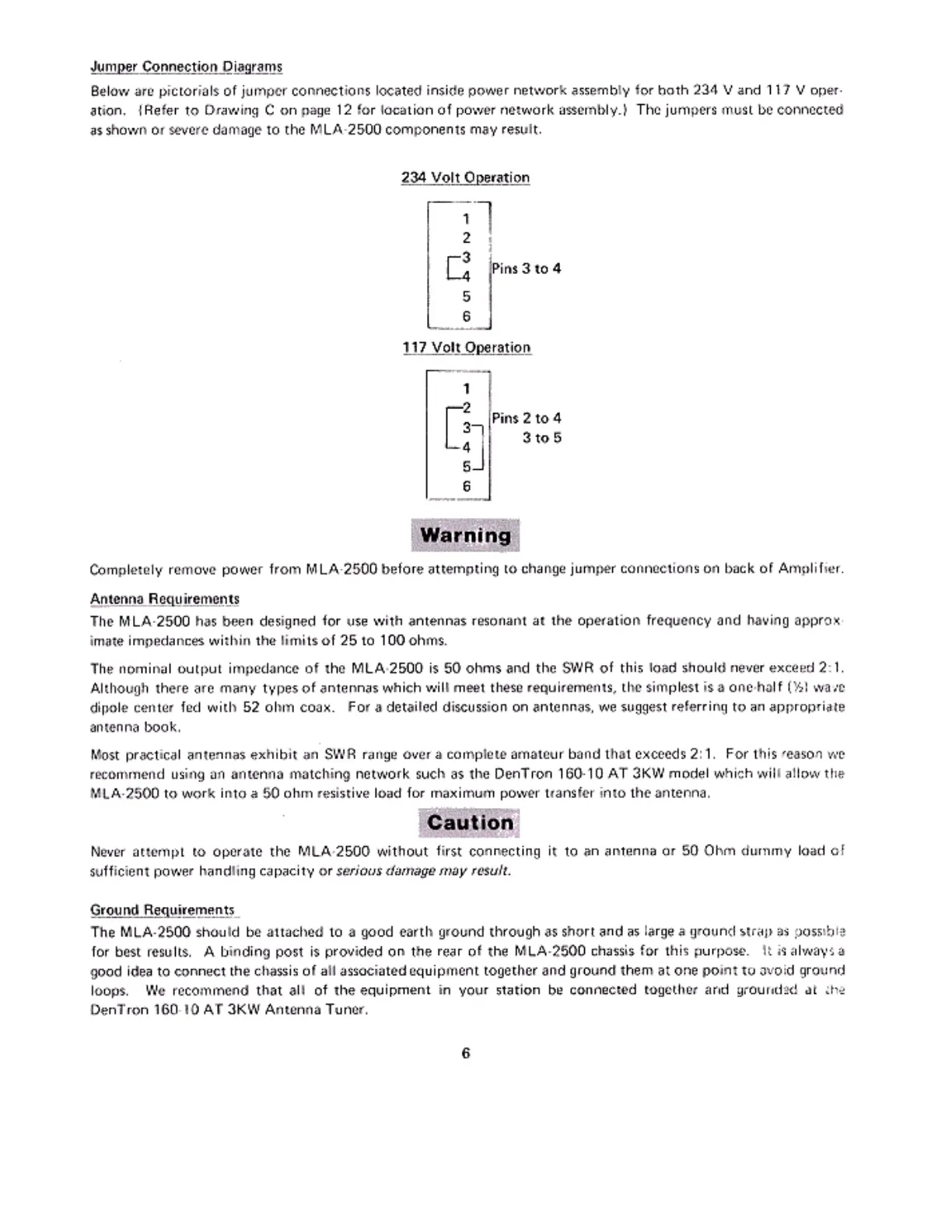 Dentron MLA 2500 - Jumper Connection Diagrams
