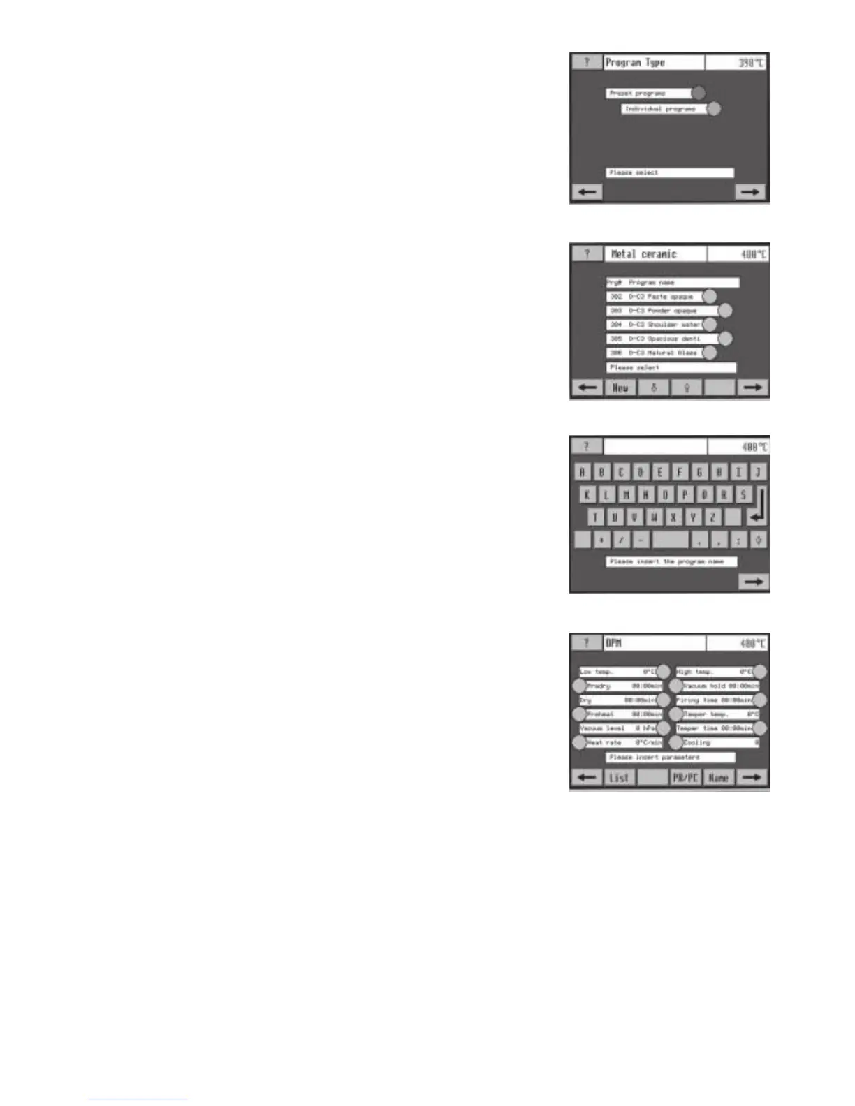 programs. After selecting the desired program type, the furnace changes to the next screen: