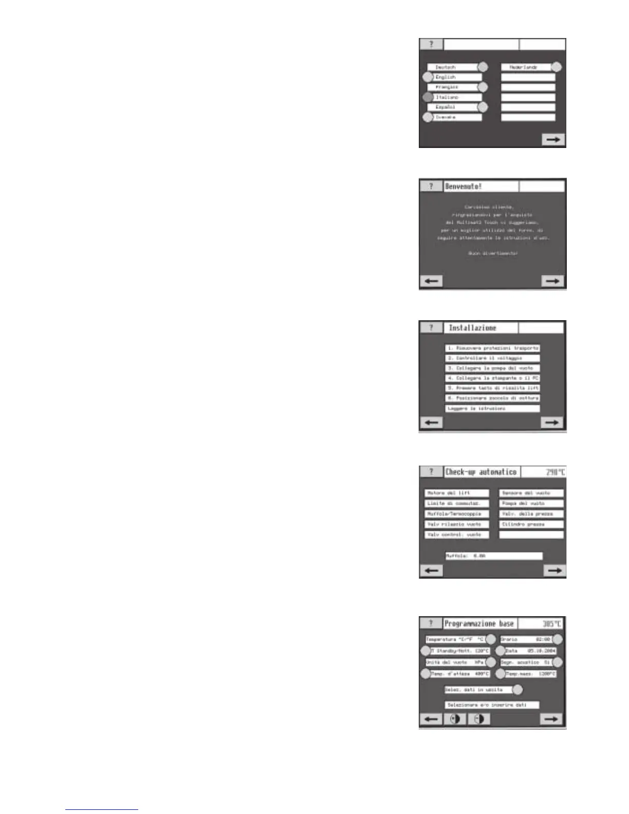 Selezionare la lingua desiderata sfiorando il corrispondente pul-sante a sfioramento tondo giallo