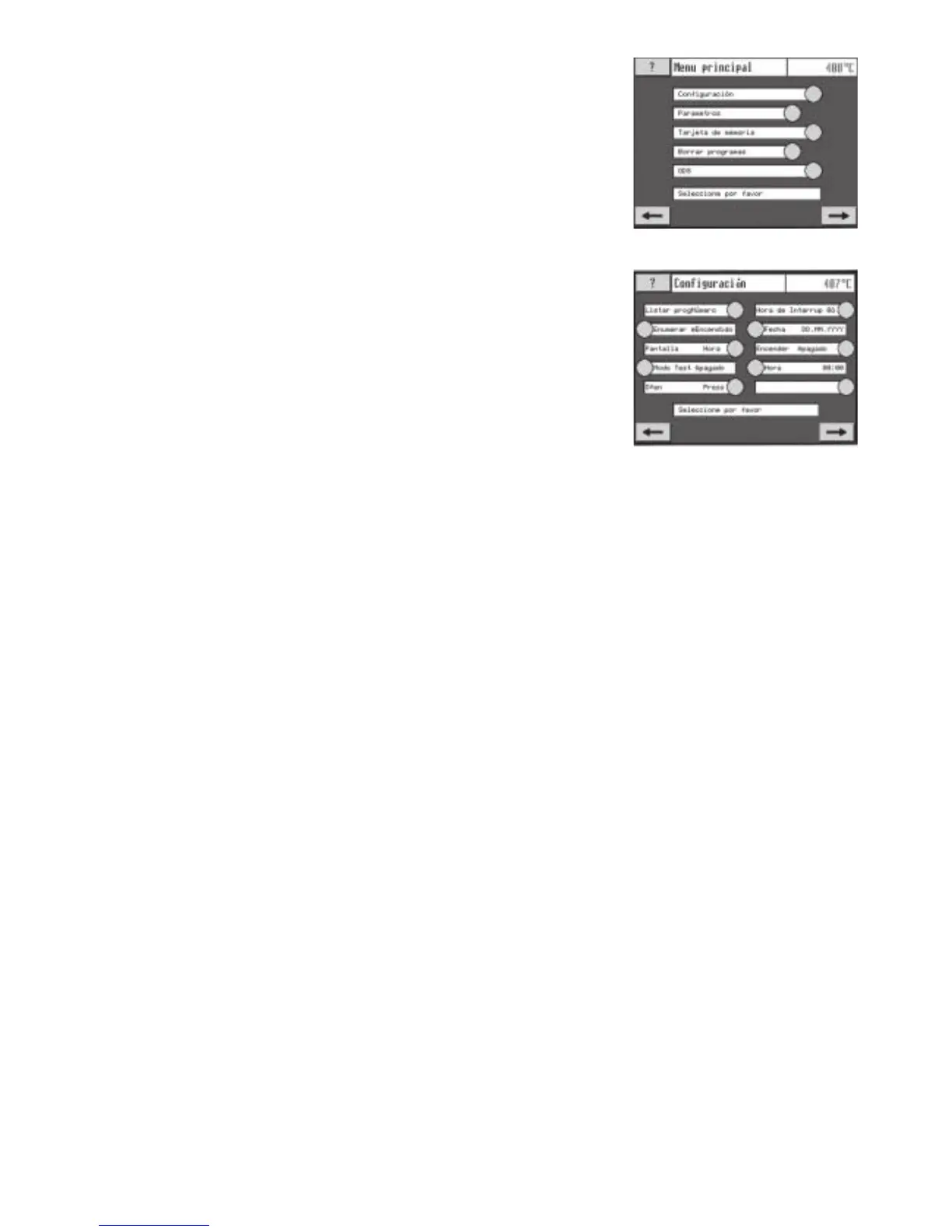 menú y en el segundo renglón una selección de submenús o un parámetro. Cada uno de los