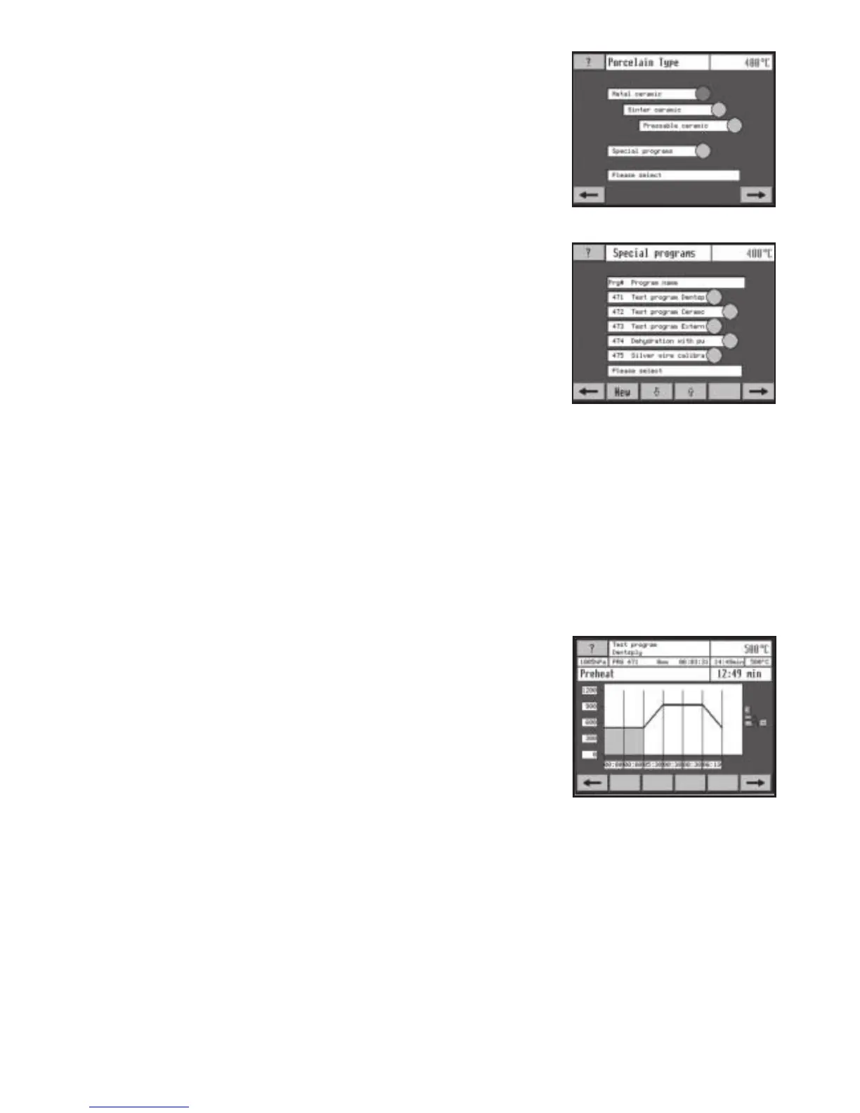 “Firing procedure”. After selecting the firing pro cedure, the screen “Fixed programs/individual