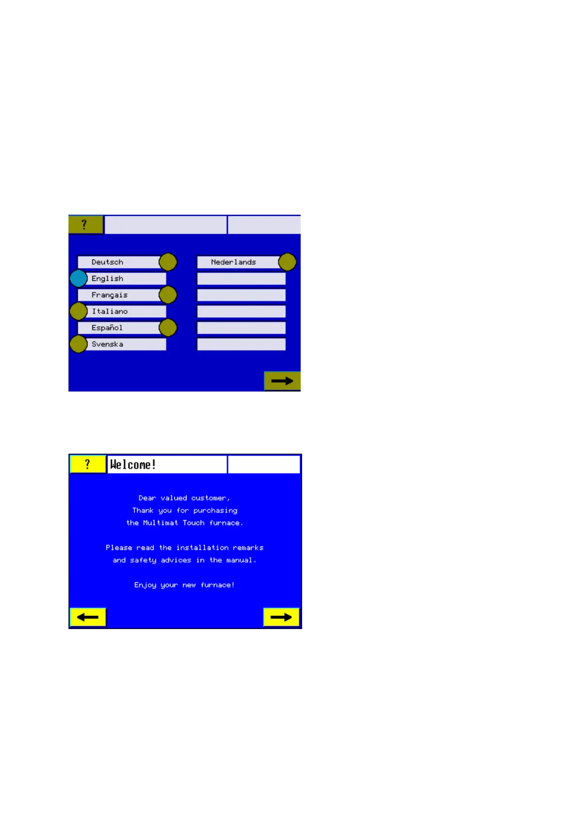Select your language by touching the