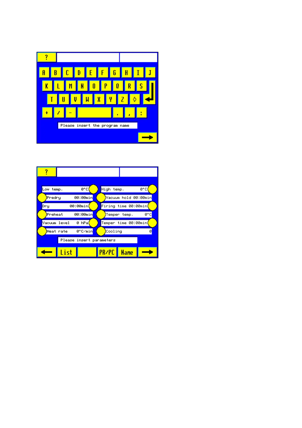 Press the respective yellow touch button. Use the numeric keypad 0-9 to enter for example