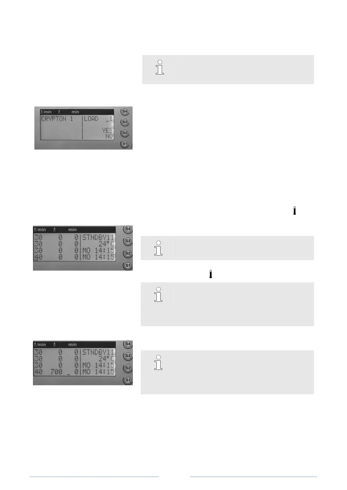 The standby screen displays the levels and heating parameters of