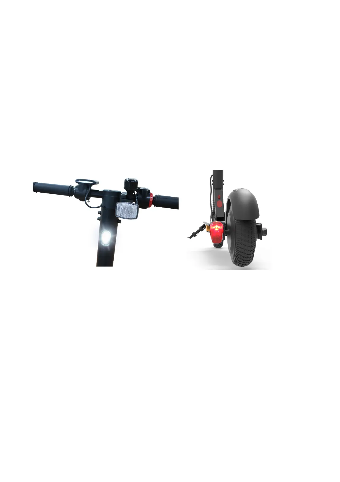This Electric scooter is equipped with the front and back LED lamps. The front lamp lights white and the back lamp lights