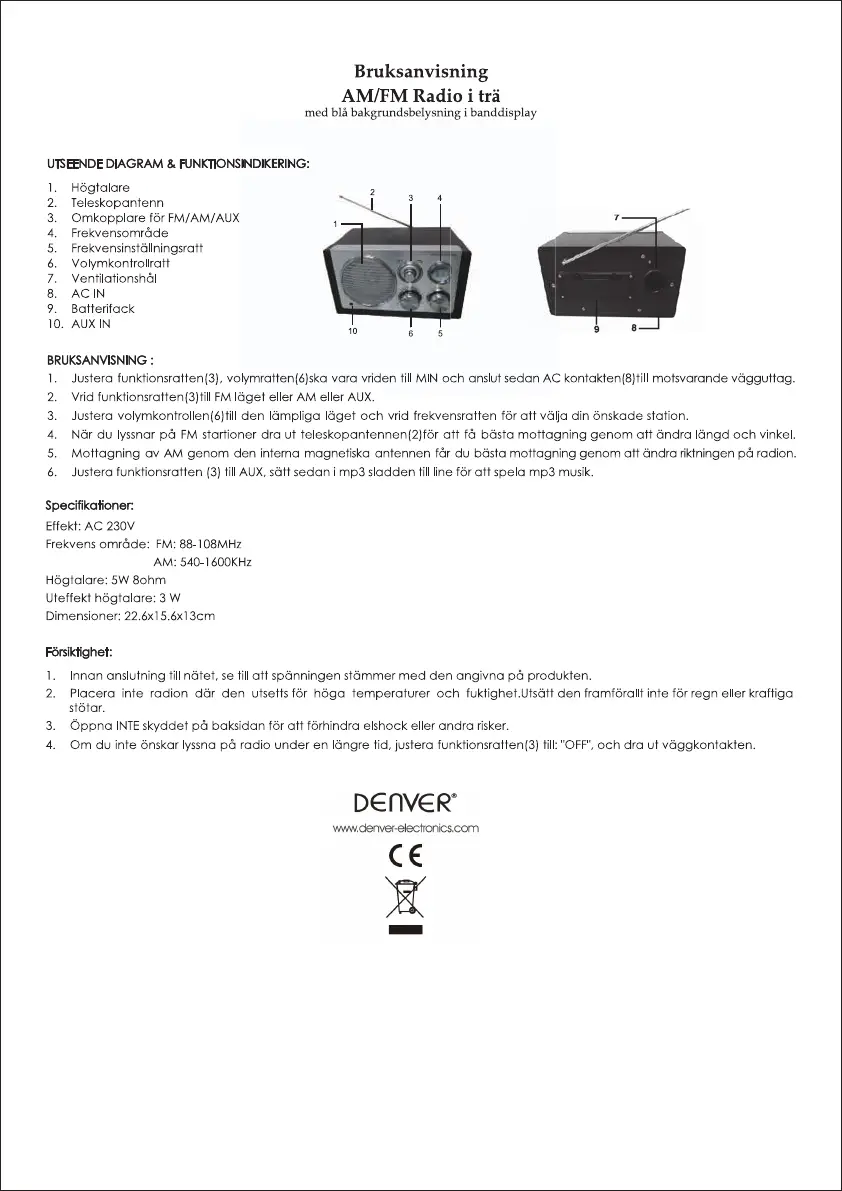 MED ENSAMRÄTT, UPPHOVSRÄTT DENVER ELECTRONICS A/S