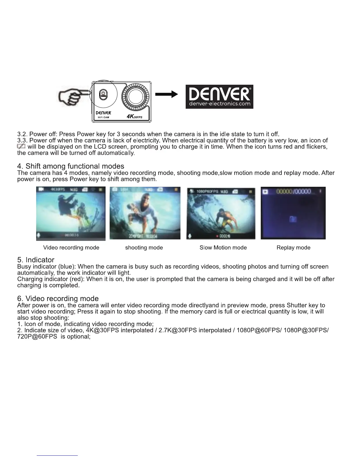 Denver ACK-8058W - Camera Modes and Indicators; Switching Functional Modes; Understanding Indicator Lights; Video Recording Options