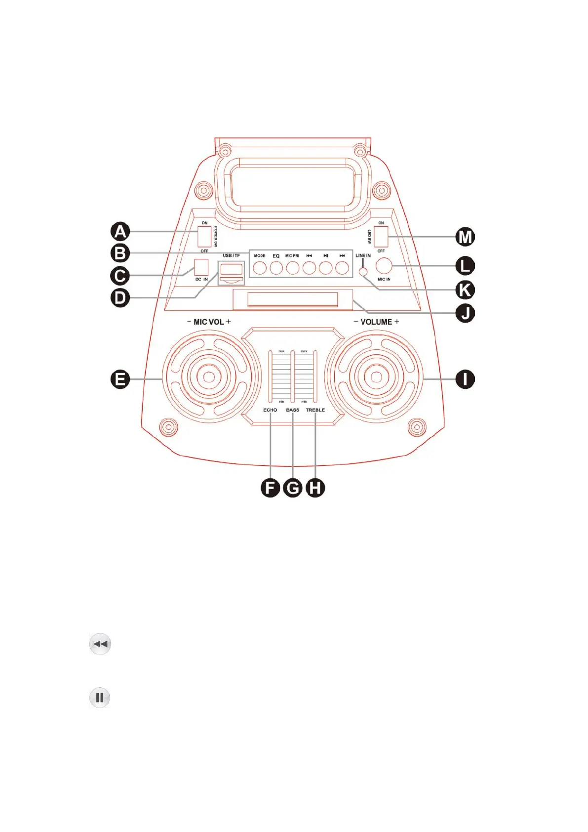 MODE: switch different mode (USB/Micro SD Card/BT/FM/Line in)