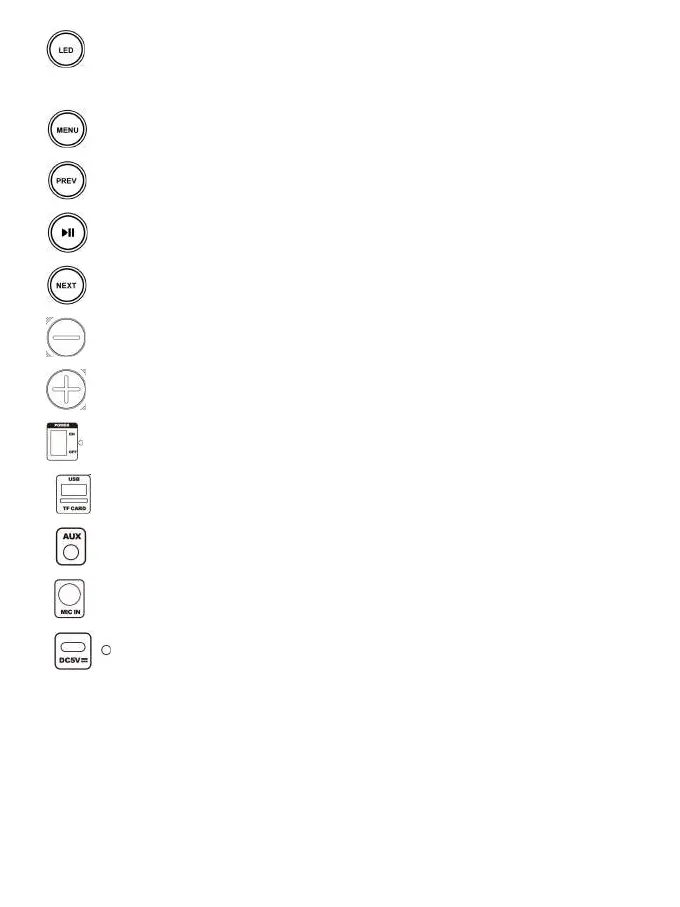 3. : Press to switch between volume control of microphone, Treble, Bass, Echo.