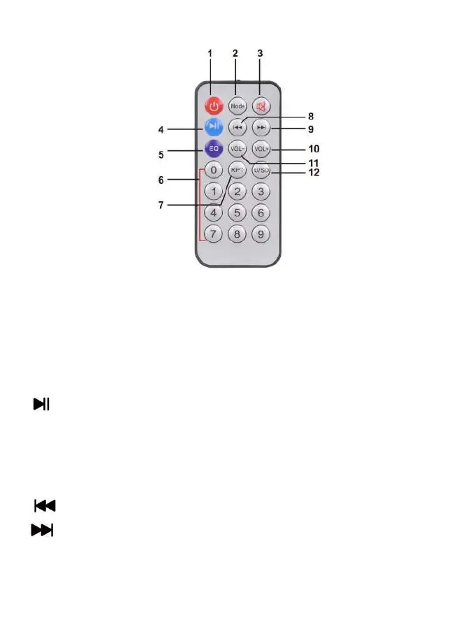 8. : Pour sélectionner la chanson précédente sur la clé USB/Carte MicroSD/BT ;