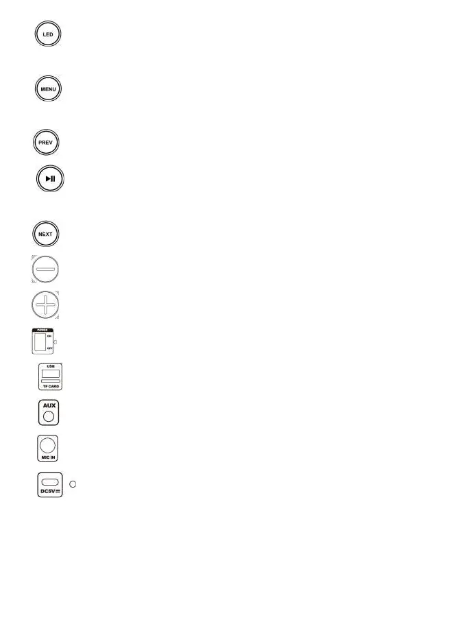 2. : Púlselo brevemente para seleccionar el modo de luz LED; manténgalo