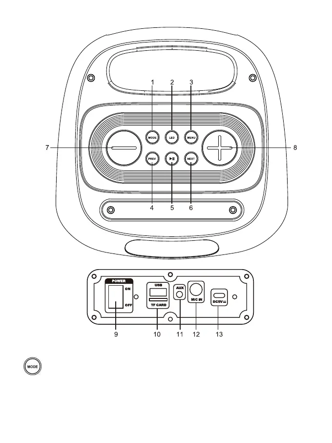 1. : Premere per passare da una modalità operativa all'altra: modalità BT, modalità
