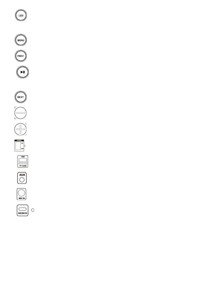 3. : Premere per scorrere tra il controllo del volume del microfono, alti, bassi, eco.
