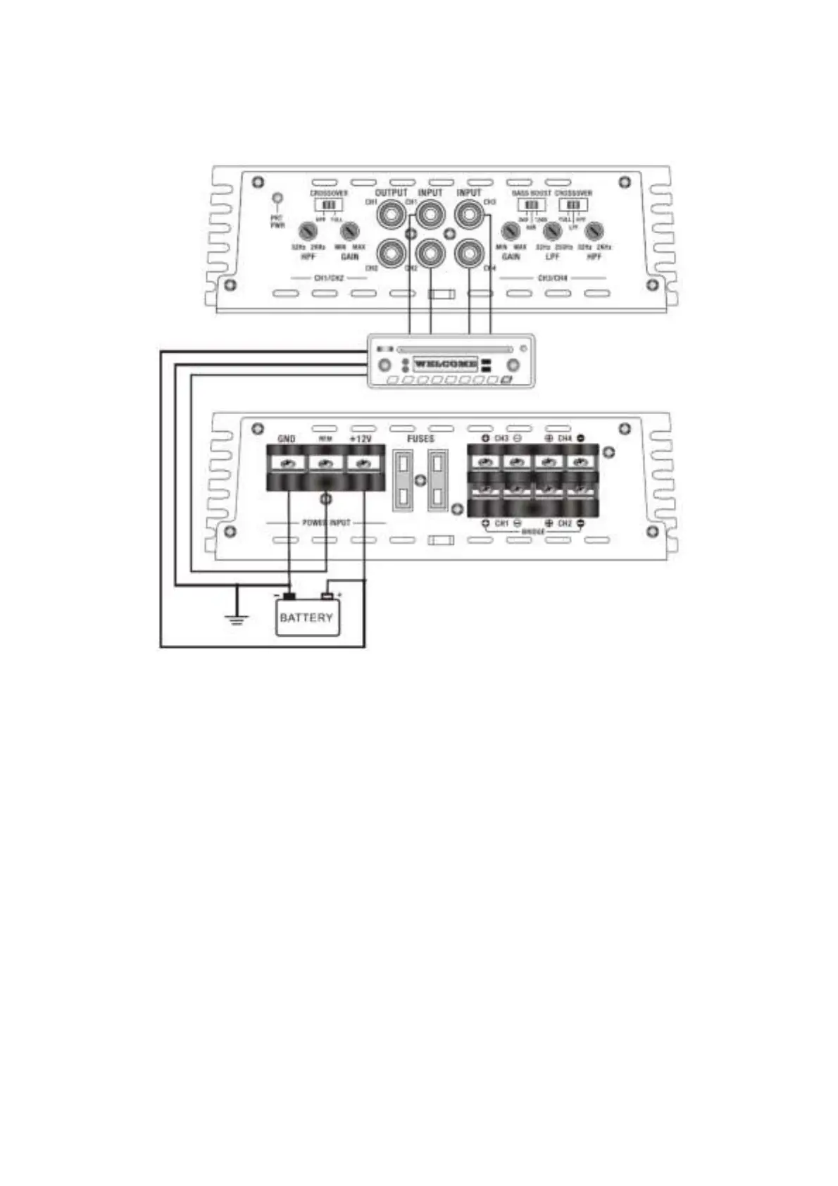 REMOTE: The unit is turned on by applying + 12Volts to this terminal. This terminal dose not