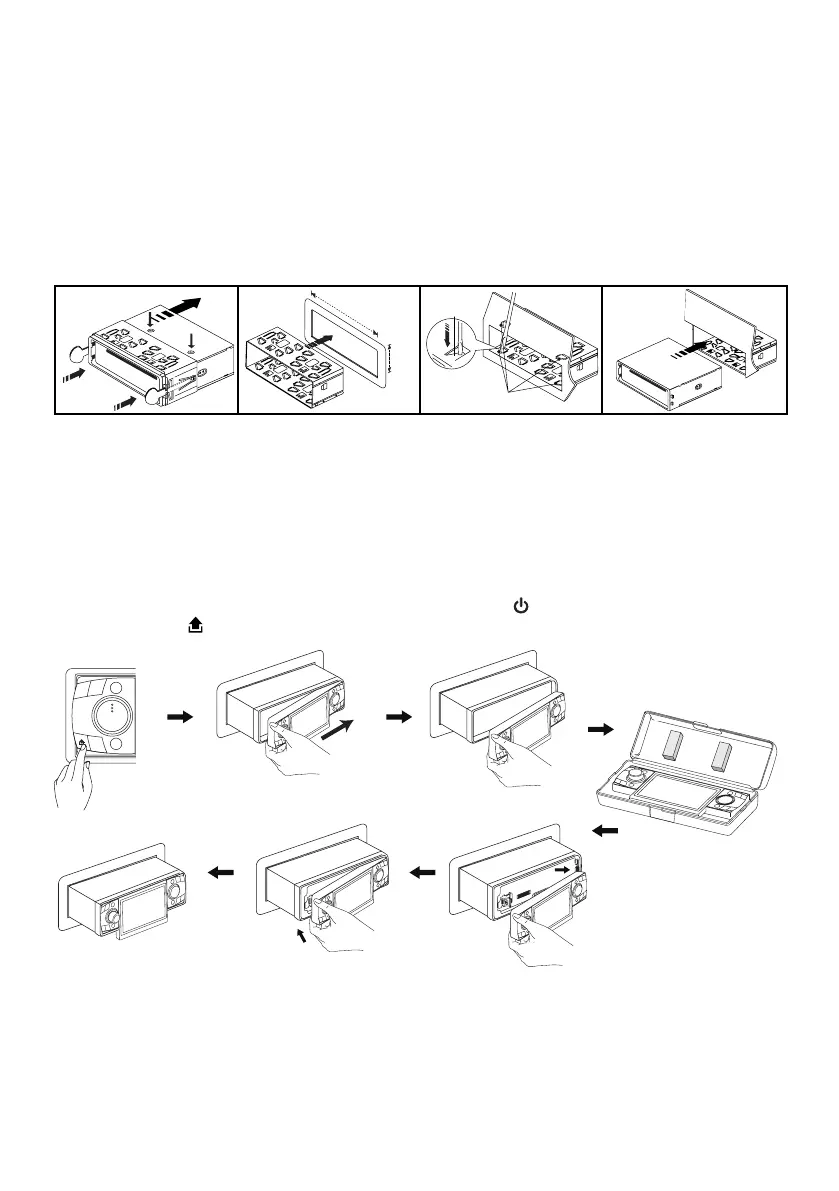 The front panel of this unit can be detached in order to prevent the unit from being sto-