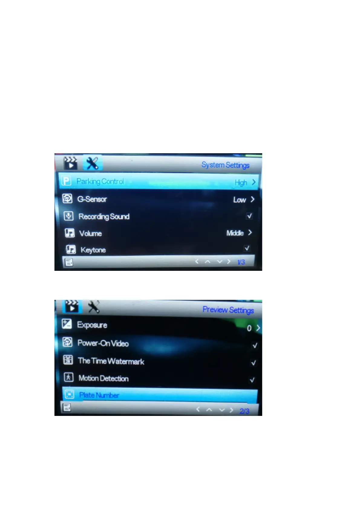 To better monitor your parked car, make the following settings. Set the G-Sensor menu option to