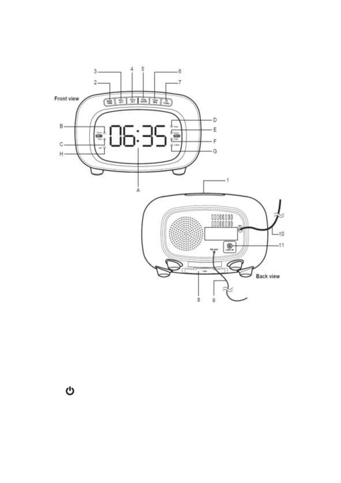 1. SNOOZE / DIMMER / SLEEP utto