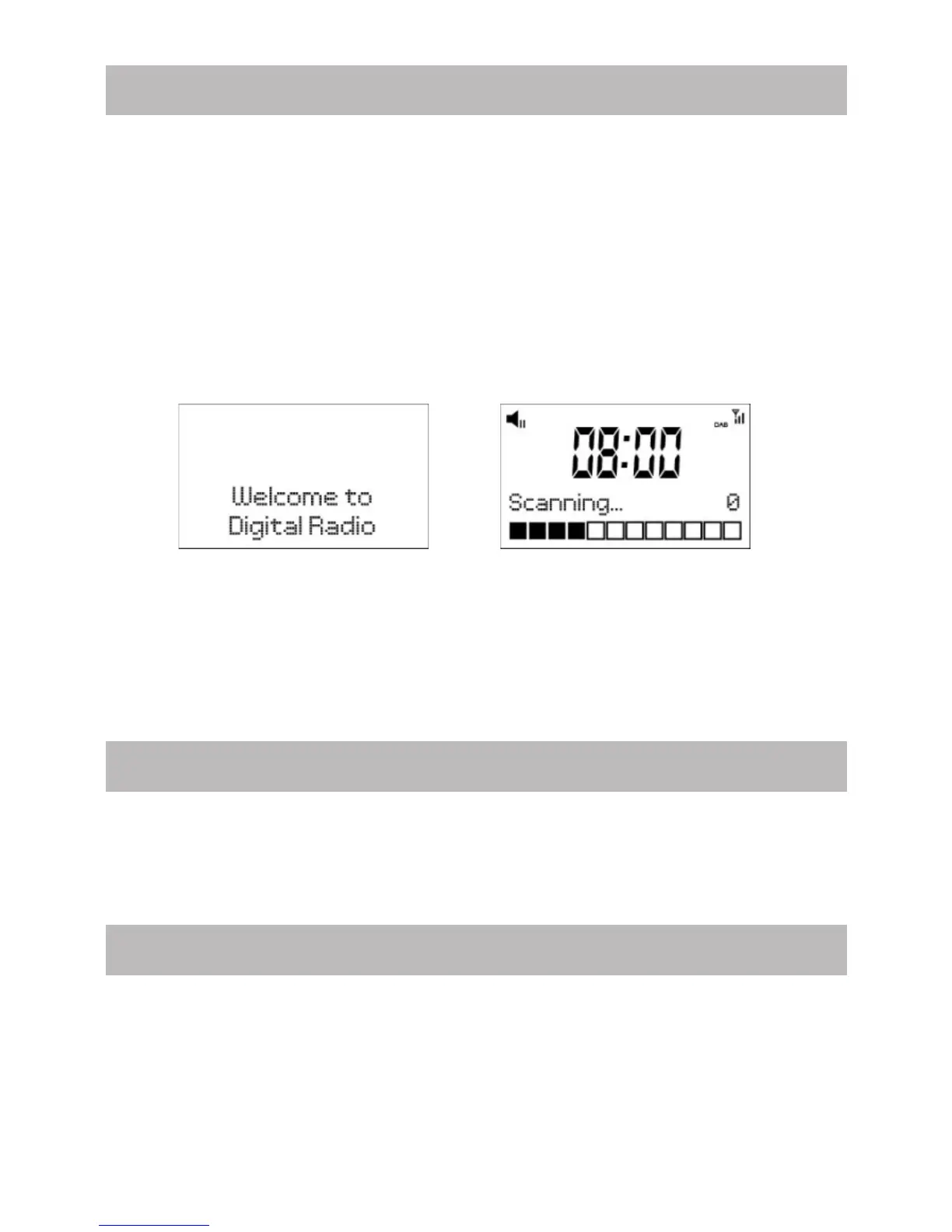 pojawi się na nim, jak następuje: Radio domyślnie włączy się w trybie DAB, po
