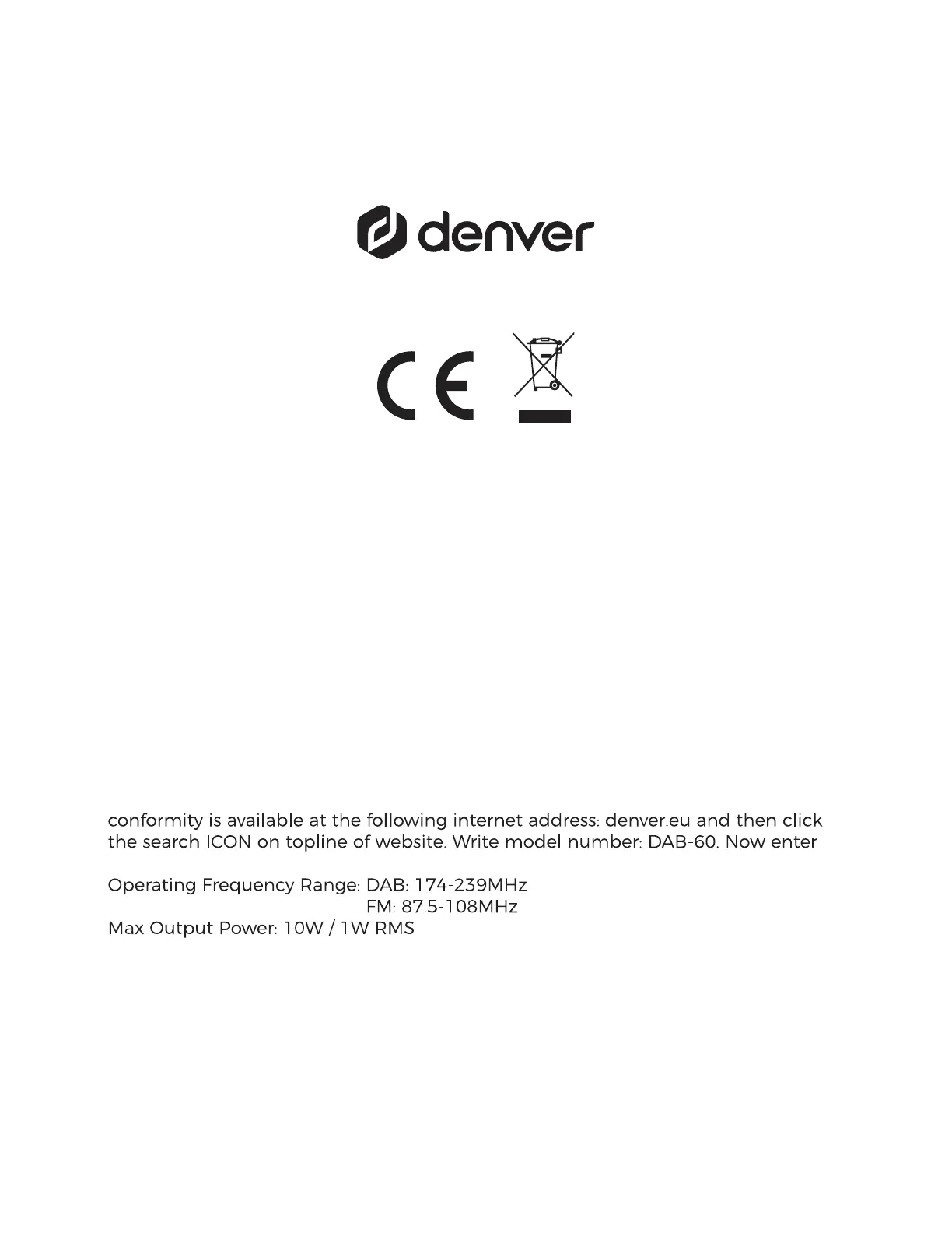 Hereby, Denver A/S declares that the radio equipment type DAB-60 is in