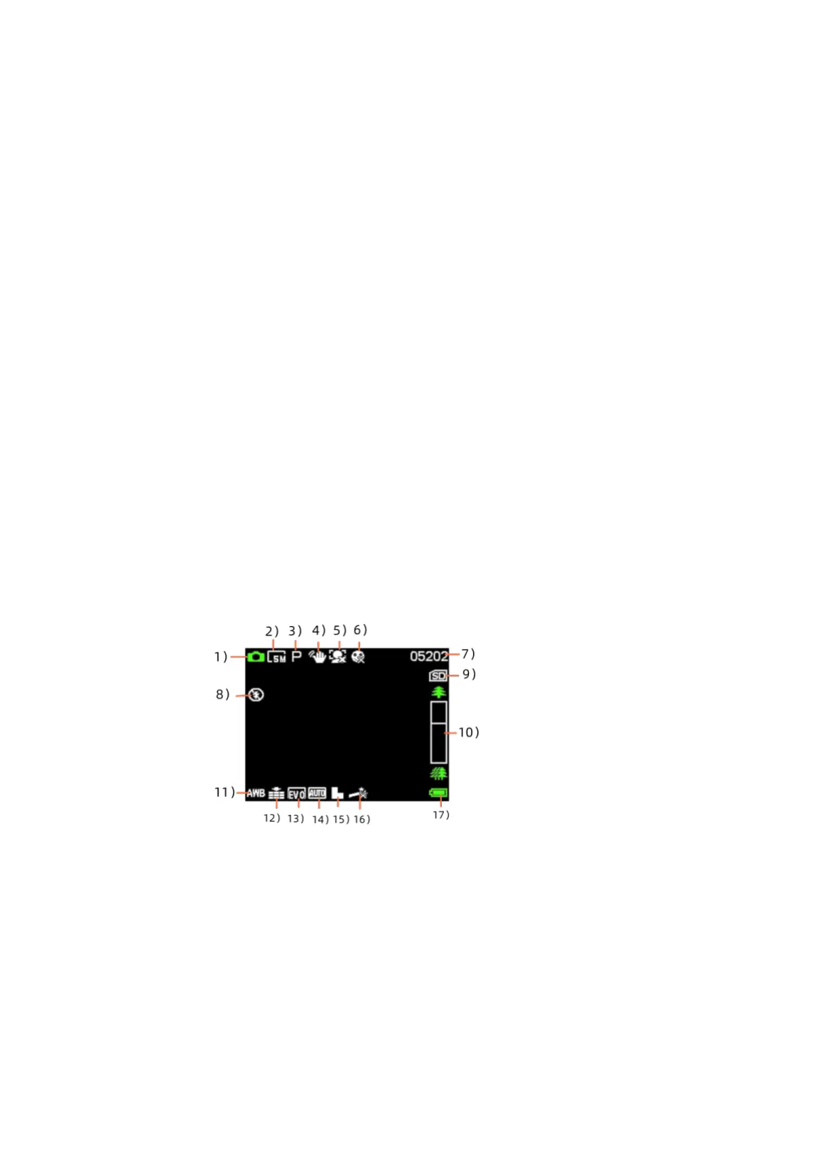 1715) Schärfe 1613) Belichtungswert 14) ISO ) Fotoeffekt ) Akkustatus