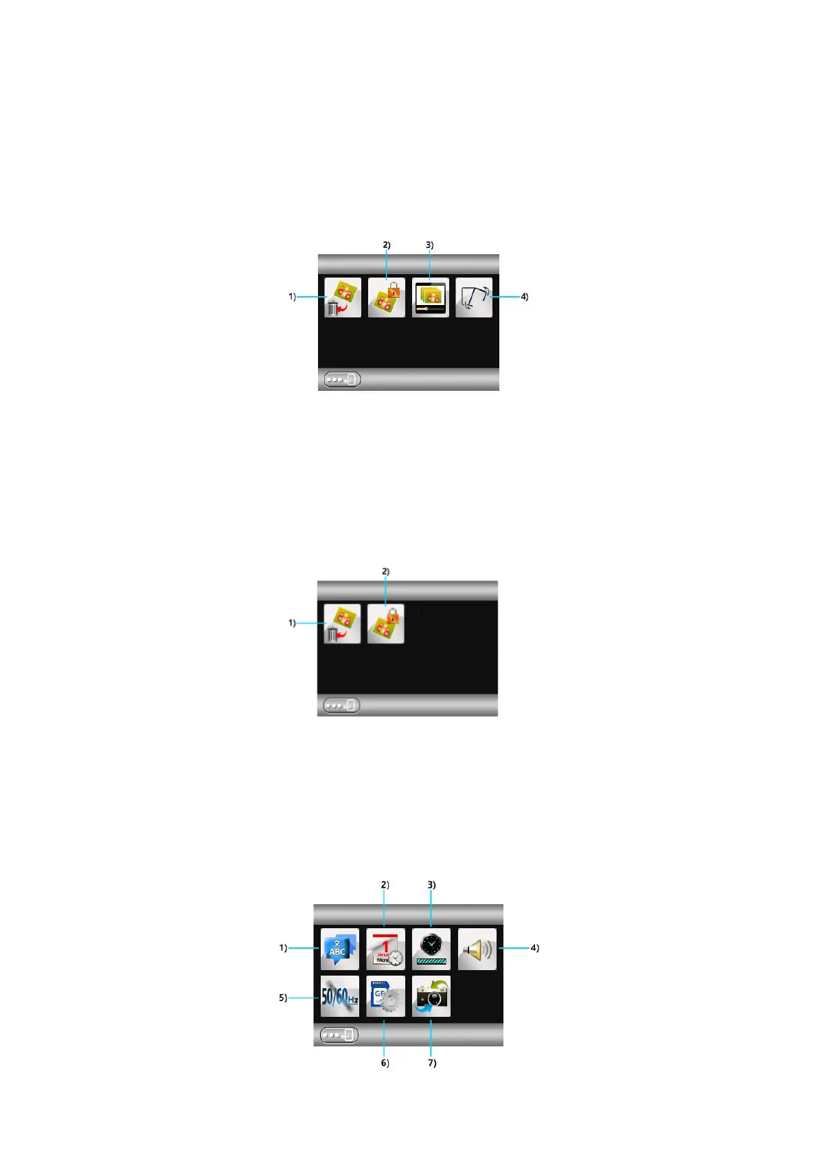1) Supprimer 2) Protéger 3) Lecture des diapositives 4) Retourner