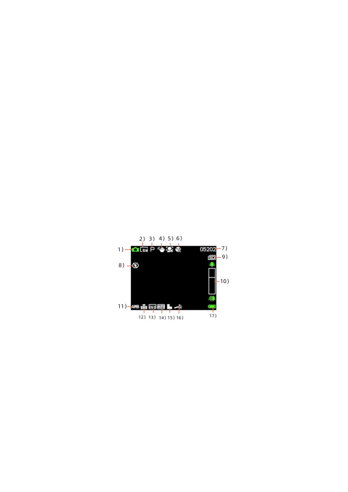 6) Disparo único 7) Número de fotos disponibles
