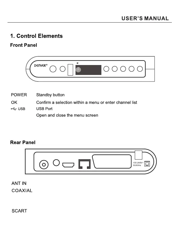Denver DTB-142 - Control Elements; Front Panel; Rear Panel