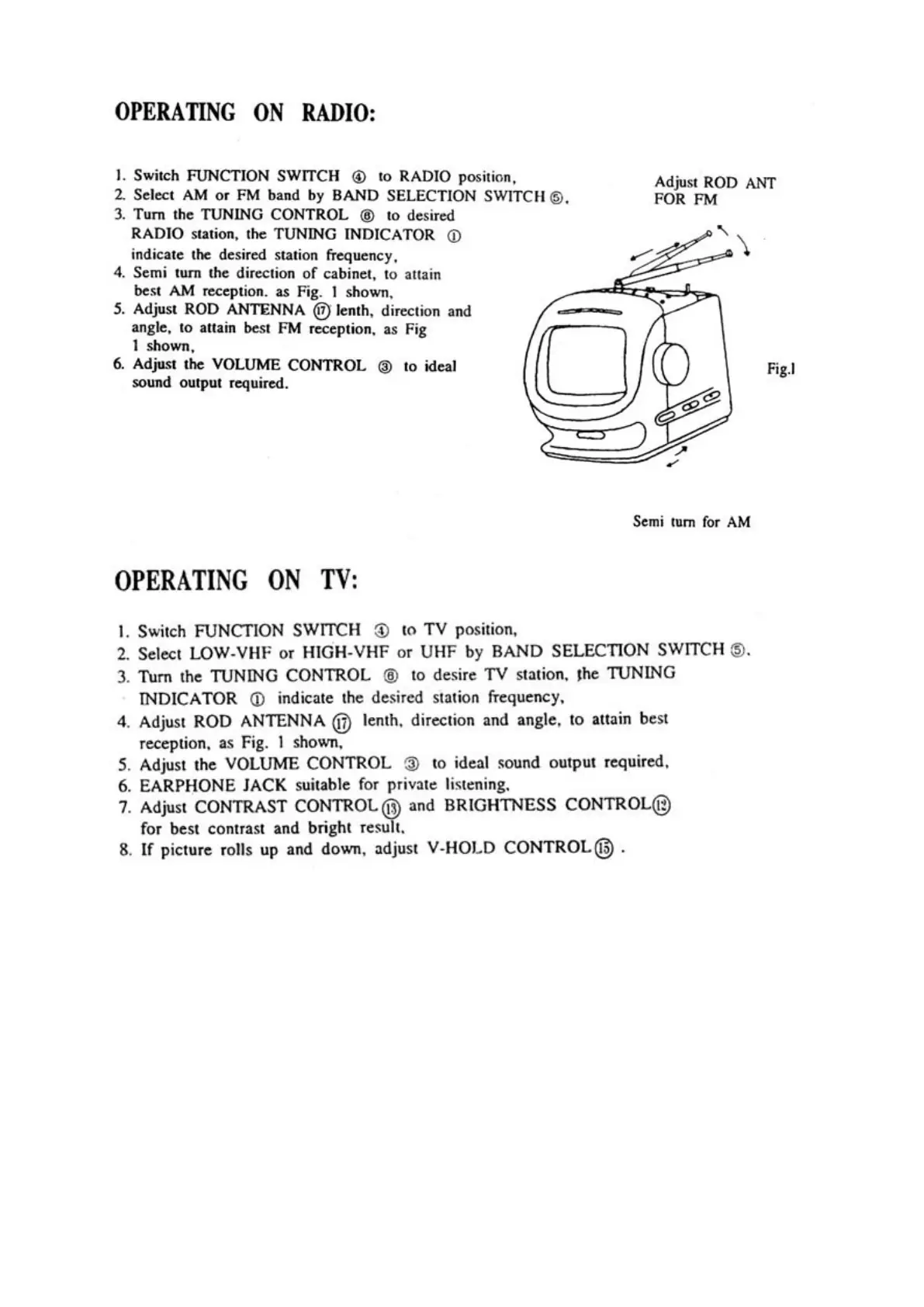 Denver DTV-540 - Operating Instructions; OPERATING ON RADIO; OPERATING ON TV