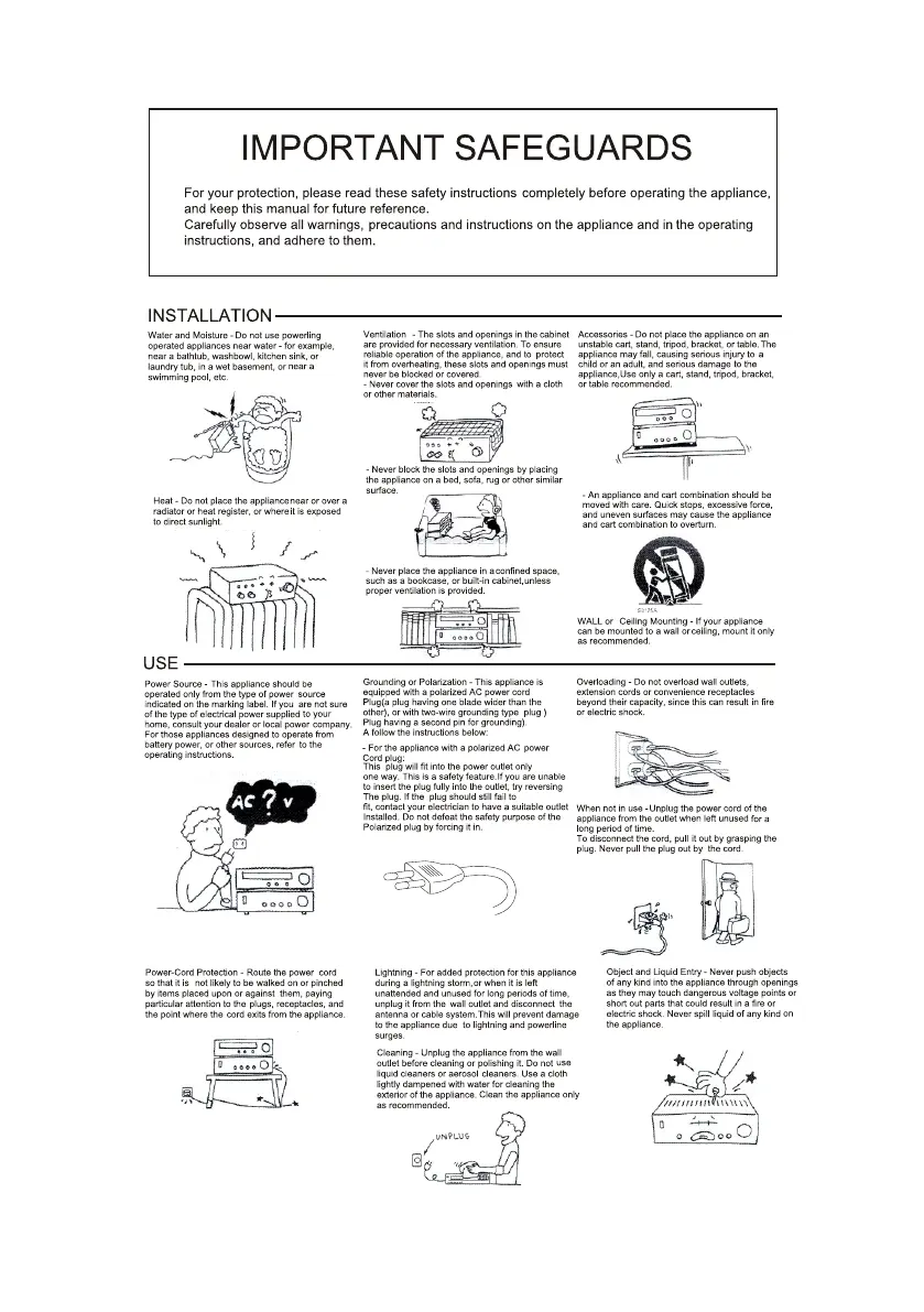 Denver DVH-7787 - Important Safeguards and Operation; Installation Precautions; Appliance Usage Guidelines